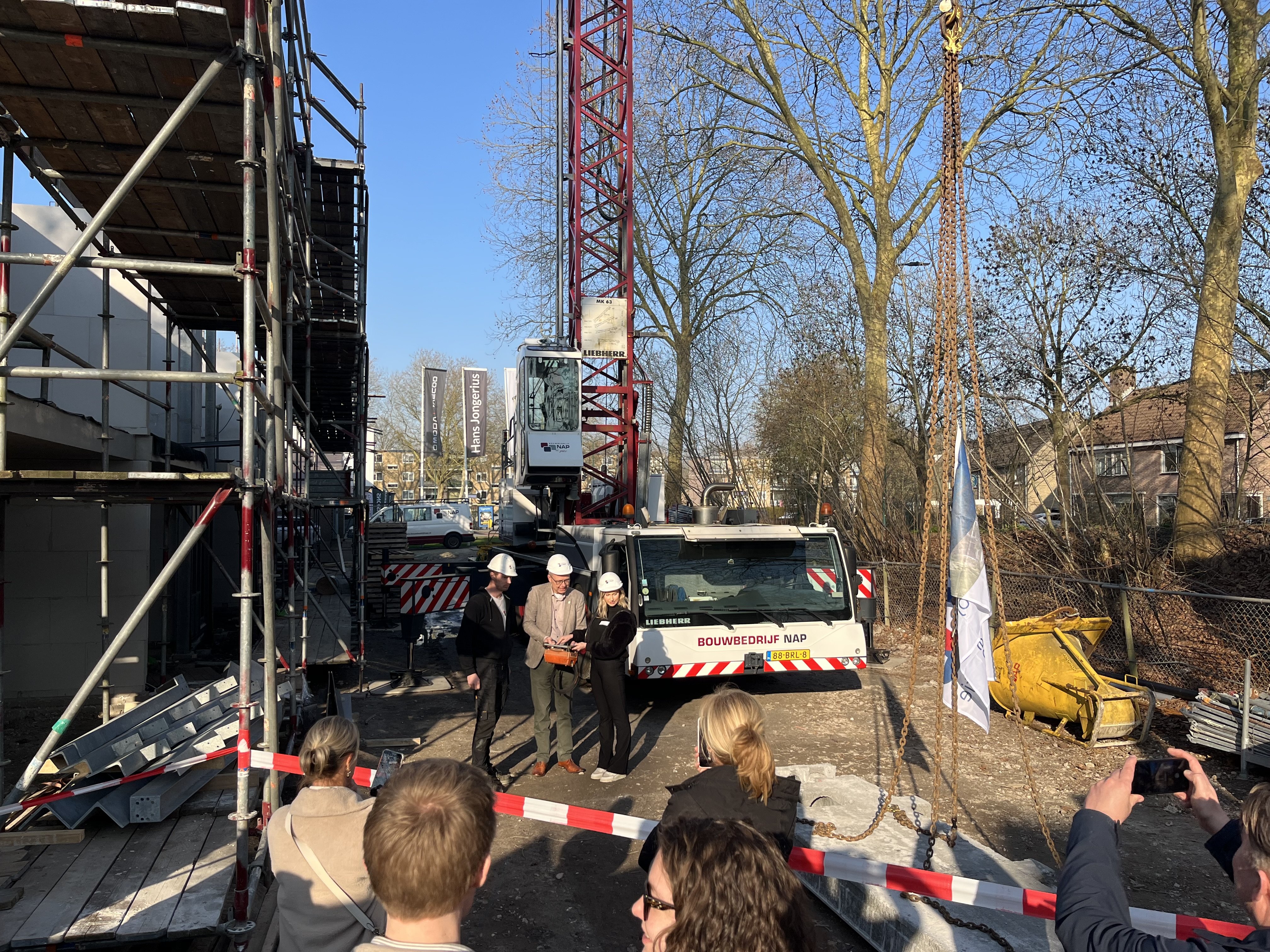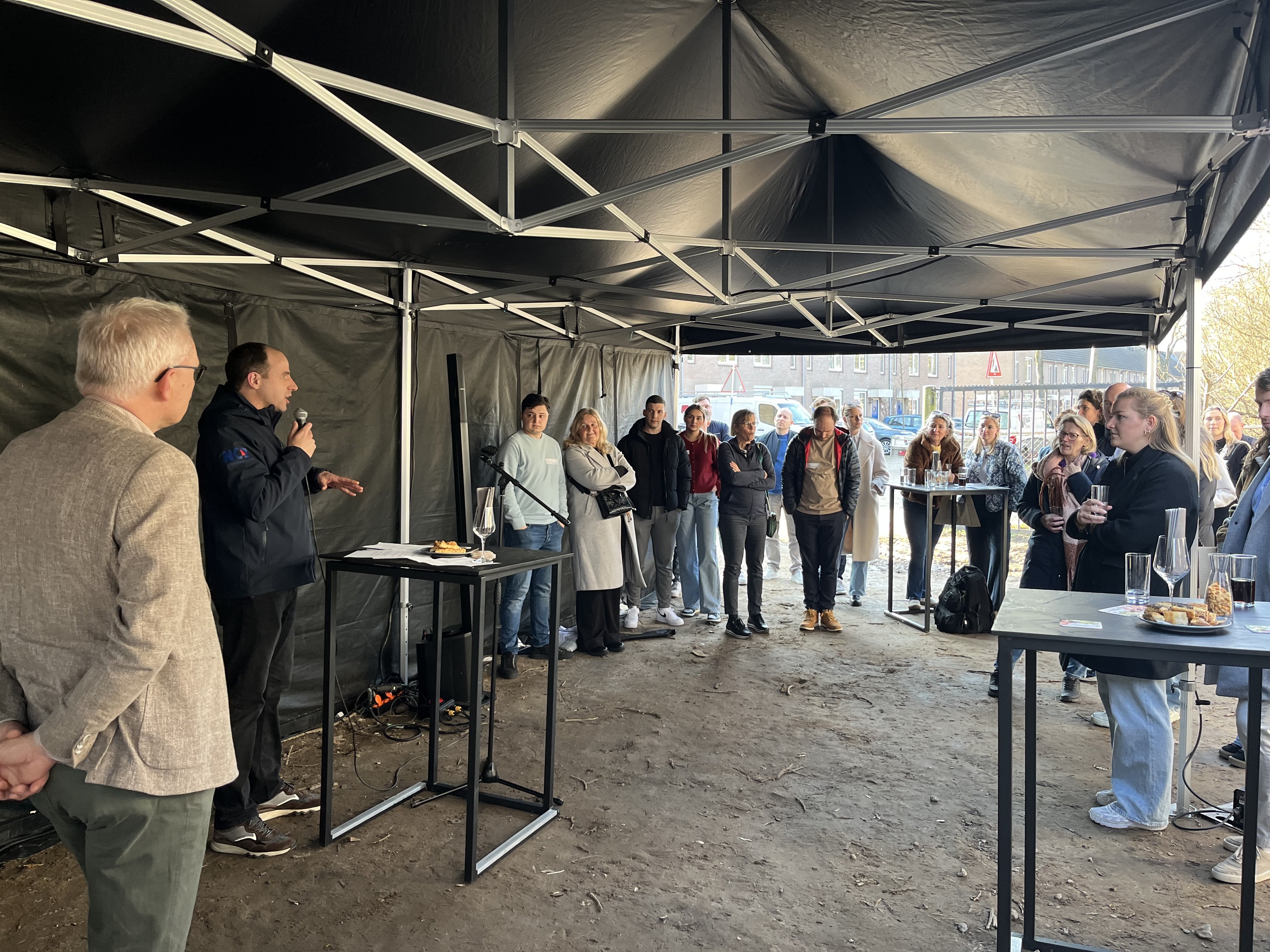 Een feestelijk moment bij de start van de bouw van plan Overwaard in IJsselstein. De eerste bouwhandeling werd verricht door wethouder Bekker, samen met de jongste koper van dit mooie project. Een bijzonder en symbolisch begin van een ontwikkeling waar we met veel enthousiasme aan werken.